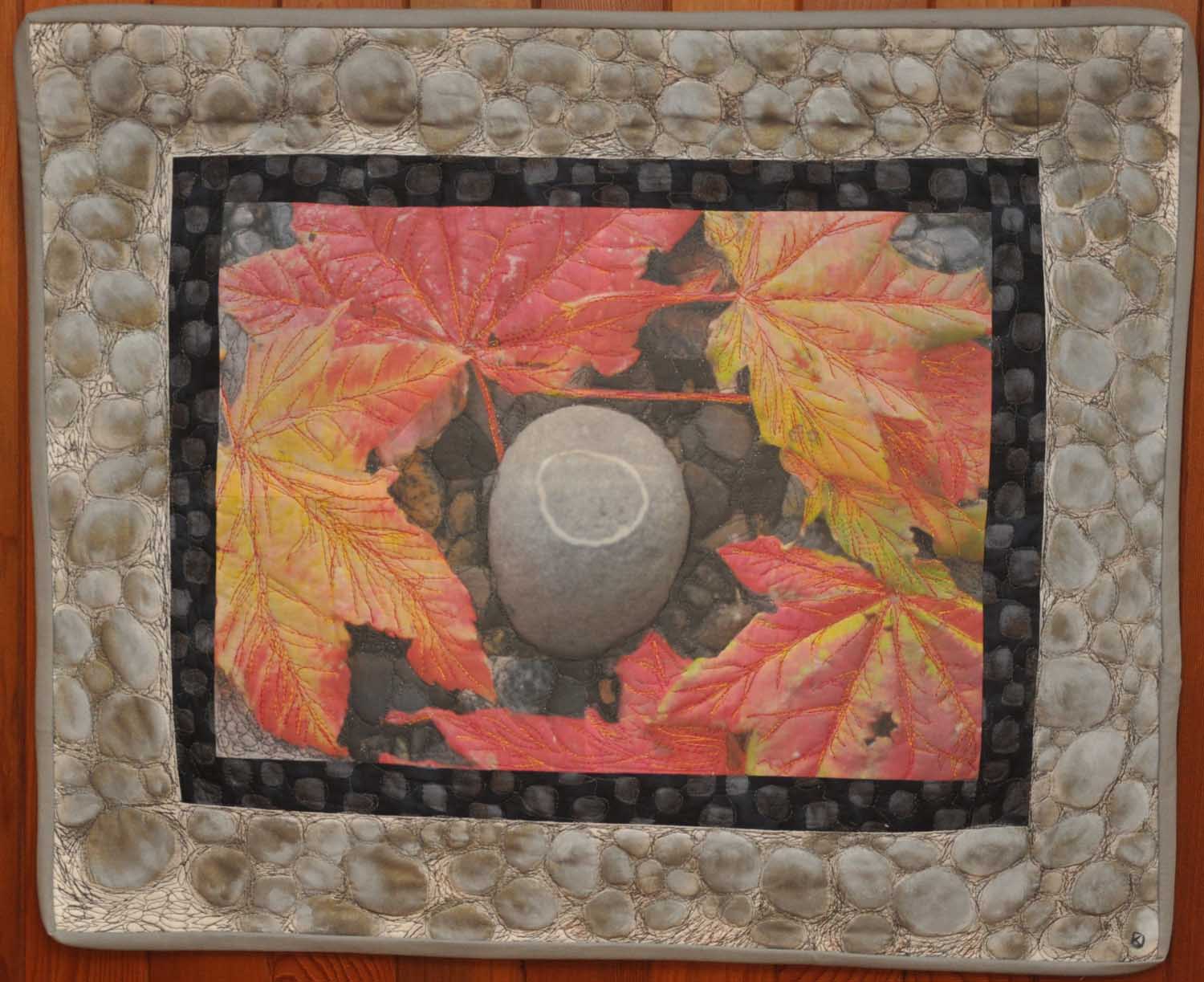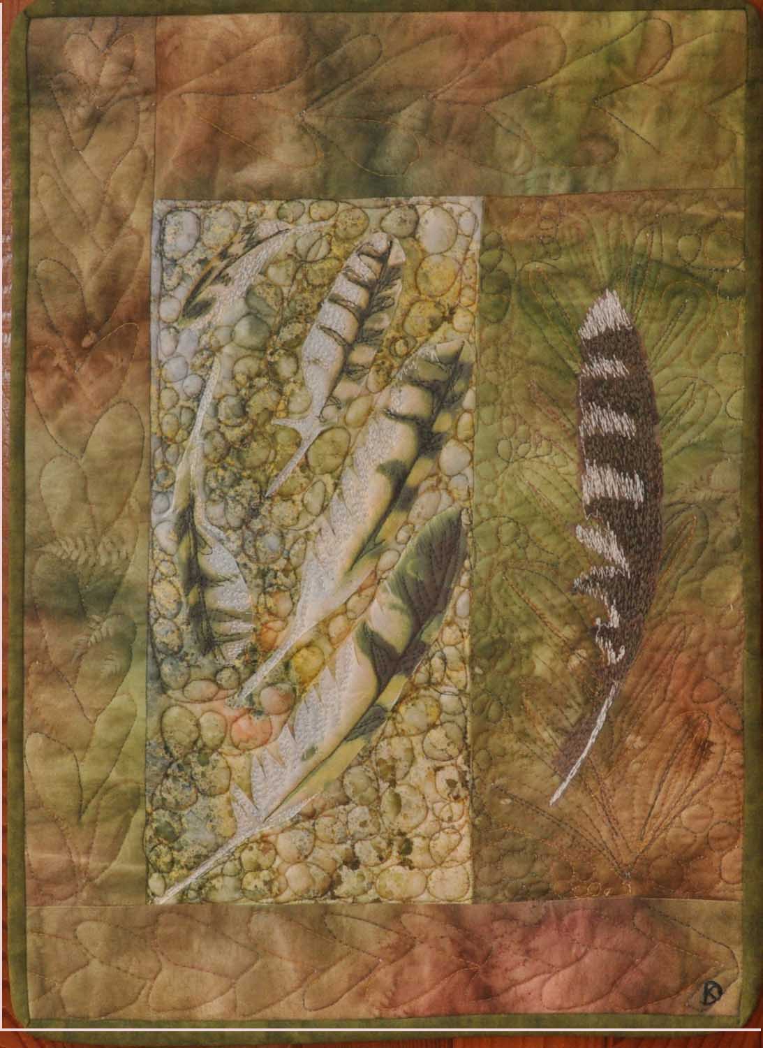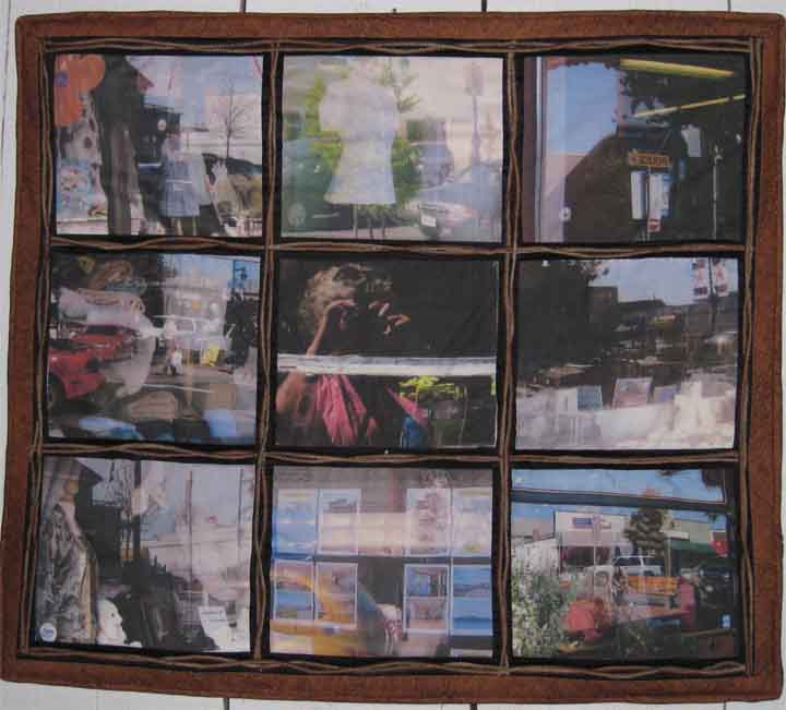 Size: 15" x 21" Material: Cotton Technique: manipulated digital photos, ink-jet printed on EQ cotton sheets and collaged with sun dyed fabric, machine quilted
