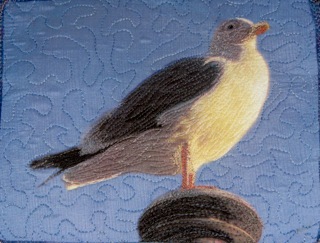 The Seagull small silk fabric art